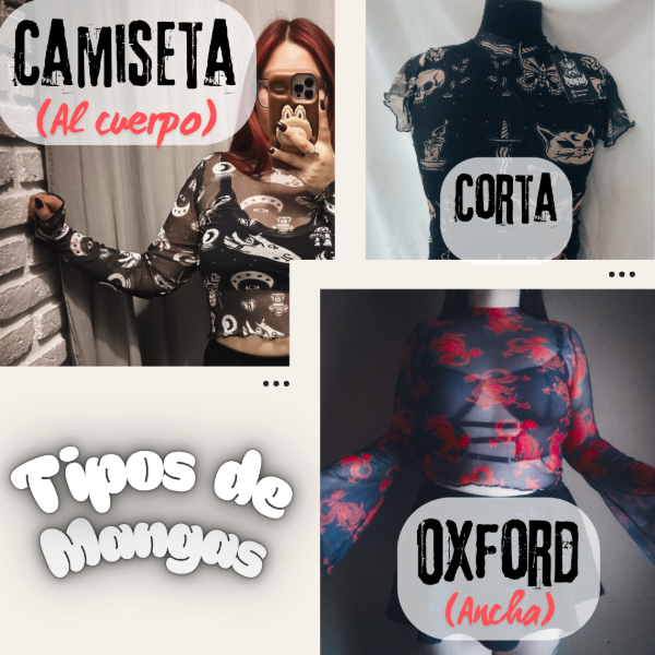 En las imágenes están las especificaciones de mangas y nombre de las telas